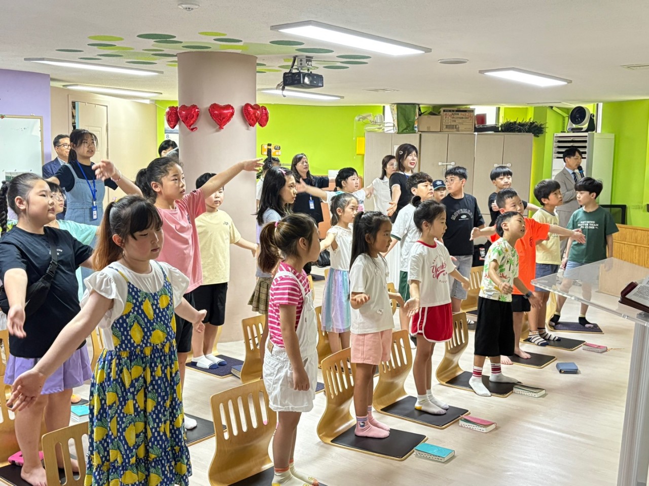 초등학교 1학년부터 3학년까지 어린이들이 진심으로 하나님을 예배합니다.